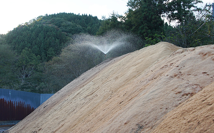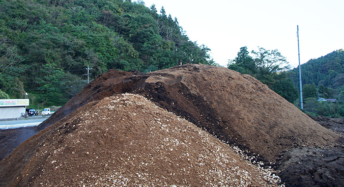 While Daishin Inc. has been carving out a reputation for themselves in substrate supply, recently they have turned their attention to what happens to their substrate after it has been used for mushroom cultivation. Ten years ago, they began a new arm of operations, collecting used mushroom substrate from the producers they supply (and also other producers who also want to dispose of it), and composting it themselves to turn it into a product that can be used by local farmers, as both fertiliser and soil conditioner.